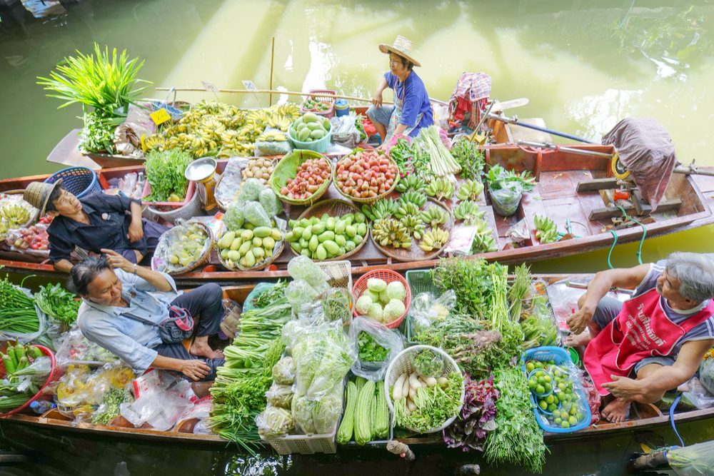 Thai cuisine—and the bevy of local produce seen here at a floating market in Bangkok—makes Thailand a mecca for foodies. Photo: Shutterstock