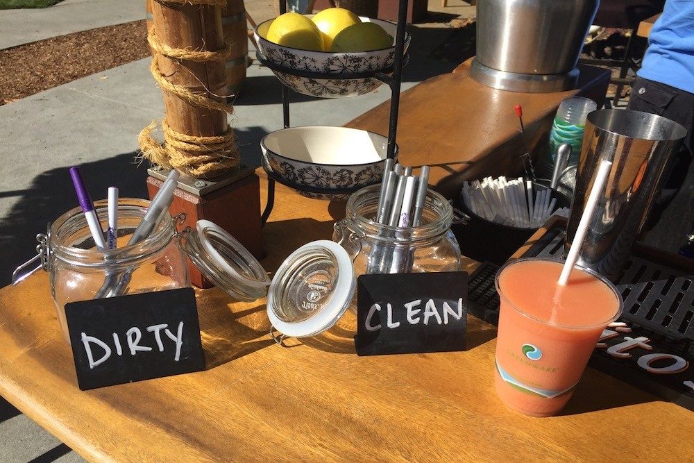 The poolside bar at the Flamingo Resort separated used pens (for signing bar bills) from unused ones.