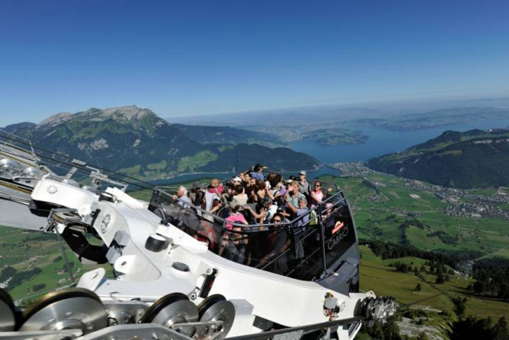 To reach the summit of Mt. Stanserhorn, ride the world’s only convertible cable car. Photo: My Switzerland