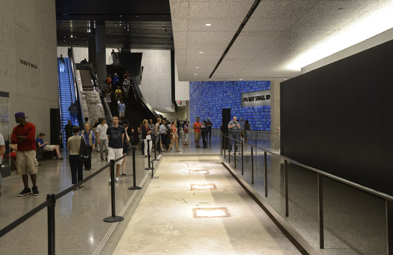 2,983 blue tiles honor the 2,983 people who died in the 2001 attacks and the 1993 World Trade Center bombing. Photo: Tim Baker