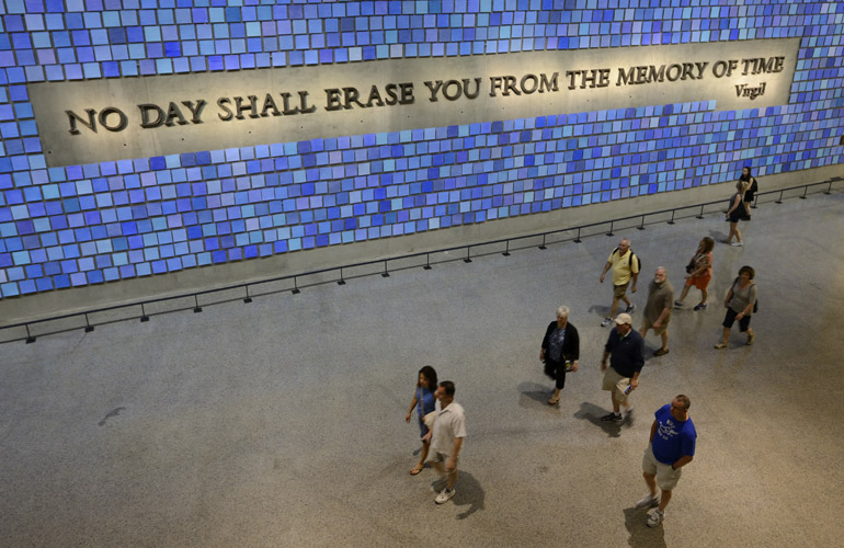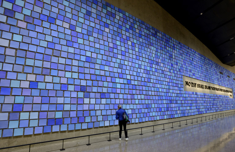 The blue tiles are said to represent the color of the sky on the morning of the attacks. Photo: Tim Baker