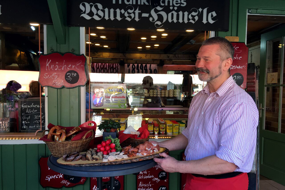 Sample Germany’s many sausage varieties at the Viktualienmarkt in Munich. Photo: Claudia Schwenger