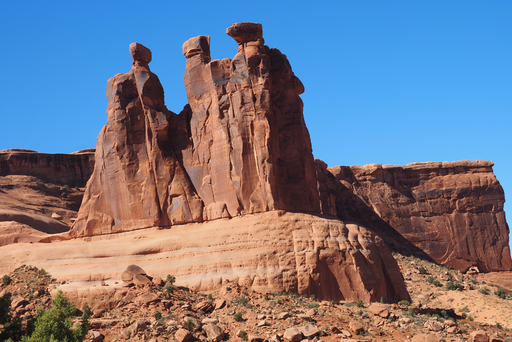 Delicate Arch at Arches National Park is magnificent, but it’s a three-hour round-trip hike on a crowded trail to get that close-up view you’ve seen in photos, and if you settle for the viewpoint from the road, you’ll probably be disappointed. Arches has so many other fantastic rock formations. Take a trail less traveled instead!