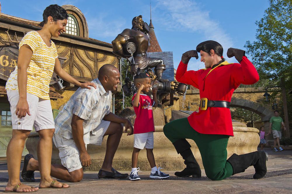 Gaston shows the art of the flex to Magic Kingdom guests. Photo: Matt Stroshane/Disney