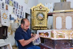 A custom-designed Maltese clock, gilded and hand-painted with a scene from your favorite spot on Malta. Jason and Damon work with a renowned custom clockmaker in Valletta.