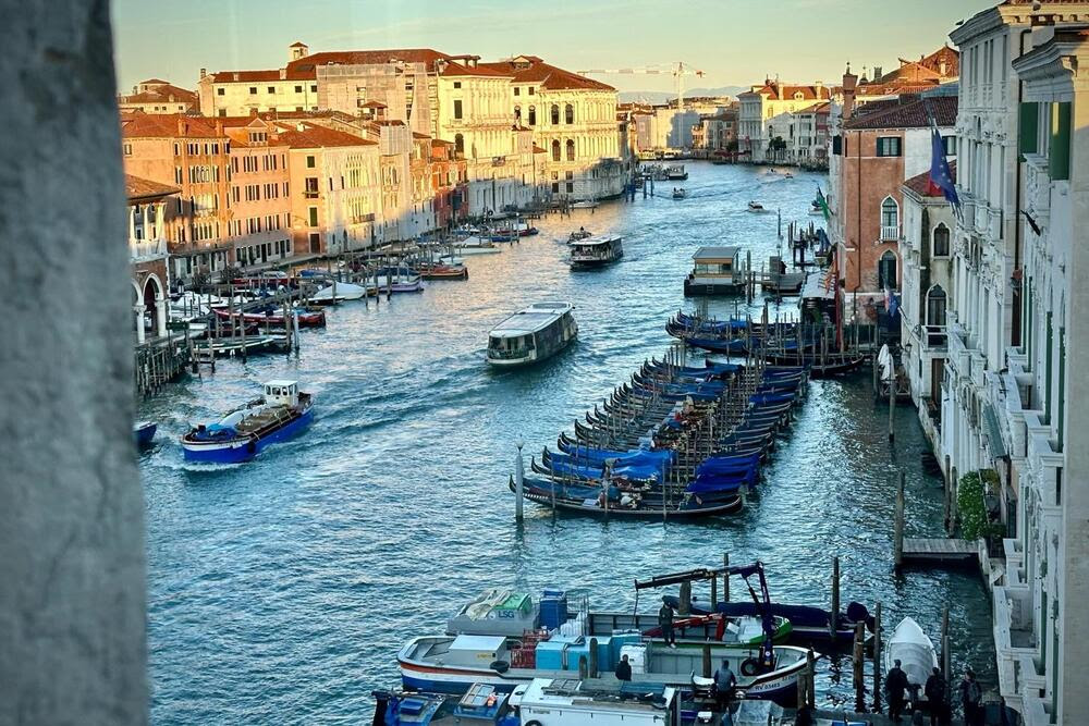 Aperitivo time at The Venice Venice Hotel. Yes, that's an Aperol Spritz. Photo: Timothy Baker Don’t you love a hotel you can sightsee from all day long and never get bored because the scenery keeps changing? I was lucky enough to stay in such a place earlier this month—a hotel with a magical location on the Grand Canal in Venice, Italy. Above, I’m on the hotel’s terrace in the evening for an aperitivo. (Yes, that’s the Rialto you see in the background.) Below was the ever-changing scene at breakfast.