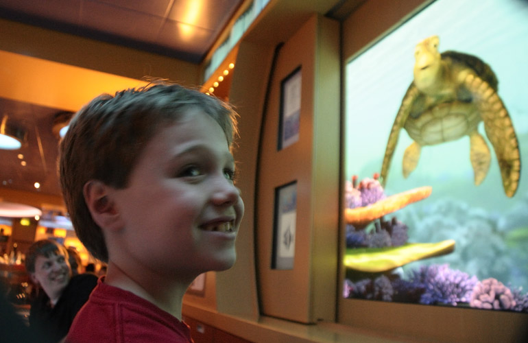 Doug in Animator’s Palate, which is the best restaurant on Disney ships because Nemo characters come to life and talk to you.