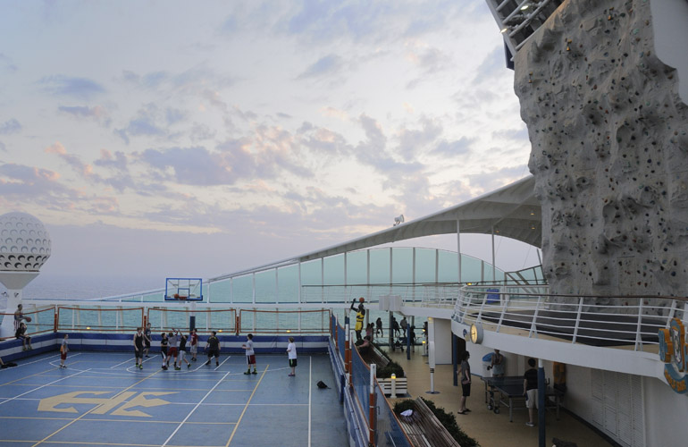 If you want a giant sports deck, choose Royal Caribbean, but you don’t really need one because every big ship has some good sports to choose from. They all have basketball, shuffleboard, and Ping-Pong, and most have mini golf.