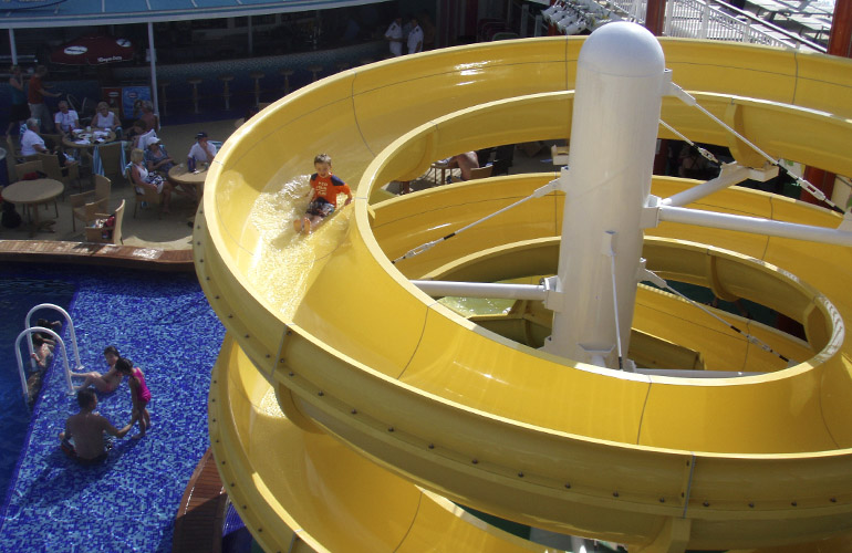 Some cruise ship pools are salty, so bring swim goggles.  If the pool has a water slide, check the height limit because your kid might be disappointed if he’s too short.