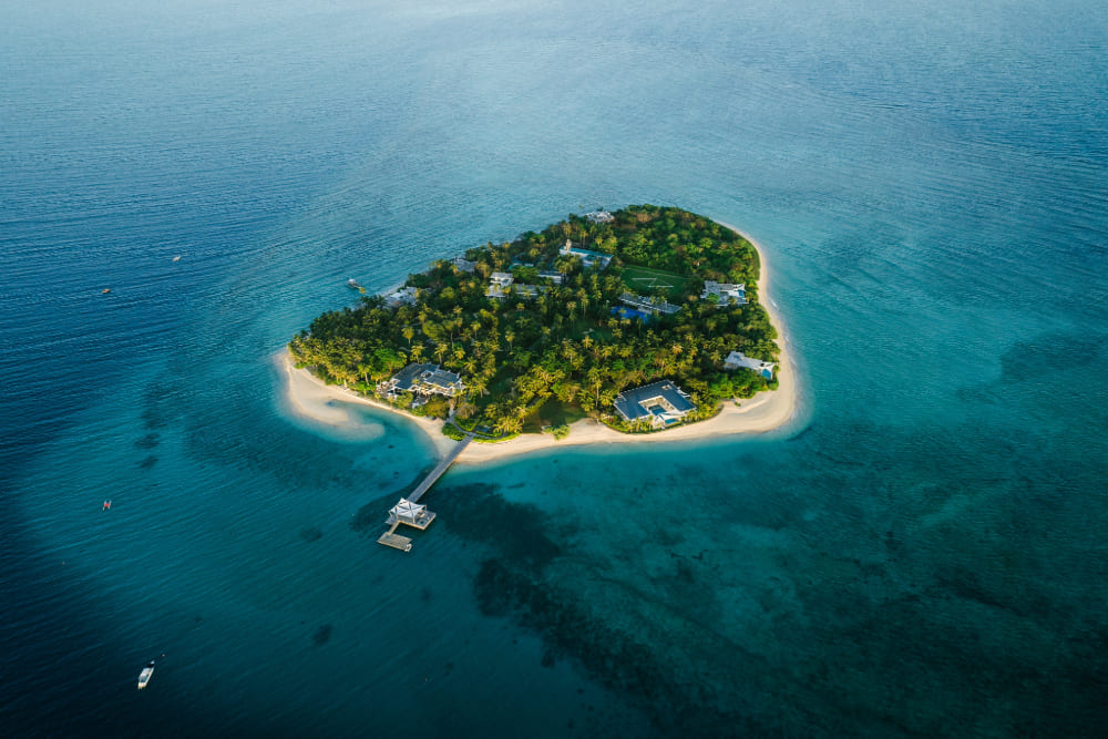 Banwa Private Island. Hidden away in northeastern Palawan, Banwa is a 15-acre property within a marine protected area. The six modern villas range from one to four bedrooms, with plenty of privacy amidst pristine white-sand beaches, lush landscapes, and a vibrant offshore reserve. The draw here isn’t just the luxurious accommodations but the unique experiences, from exploring the Amazon-like Barbacan River, to scuba diving in the UNESCO World Heritage Site of Tubbataha Reefs, to visiting the small fishing communities in the nearby Gubat Islands.