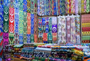 Textiles—silk scarves and brilliantly colored Ikat-patterned fabric especially. One of the most surprising handcrafts is suzani, a bold, heavy embroidery on rich fabric, often in gold and silver.