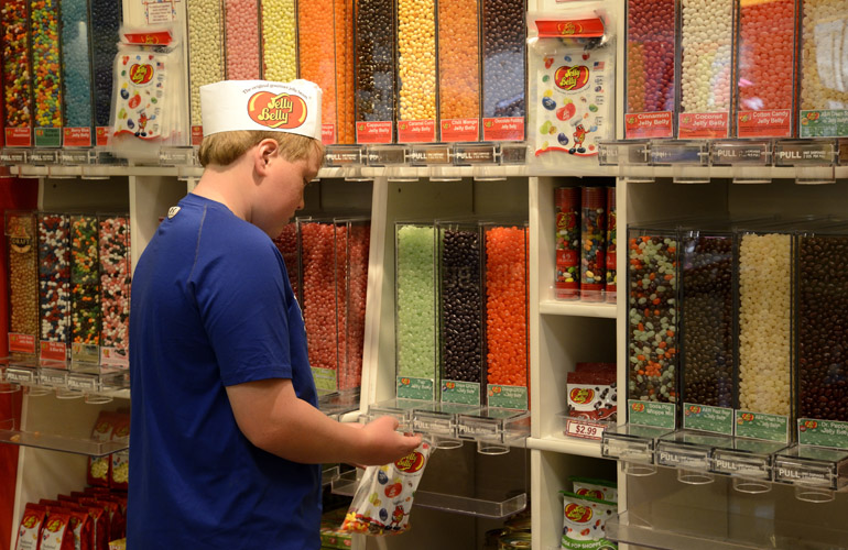 You’ll find plenty of parking at the main entrance at One Jelly Belly Lane in Fairfield, California. ATTENTION, DADS: Anheuser-Busch is about a mile from Jelly Belly and offers tours of its own. Must be 21.