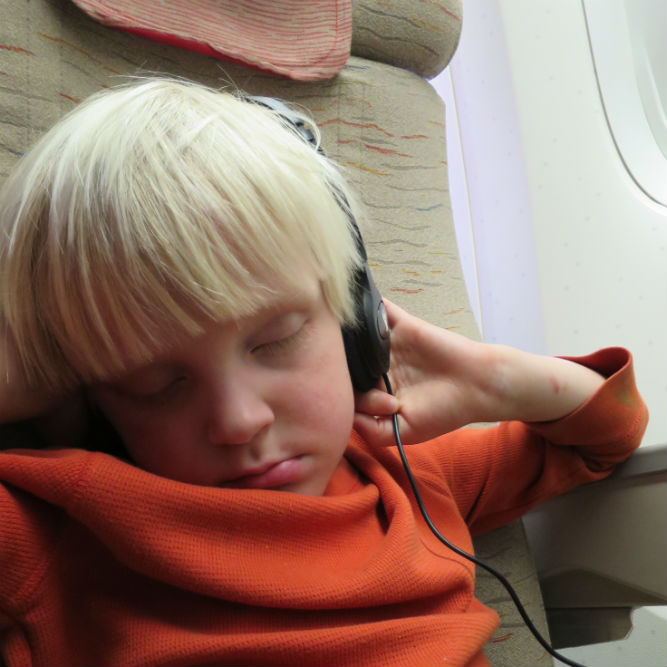 I needn’t have been so worried about the flight; while there were a few tough moments, we passed the time surprisingly easily. Flying that distance with a baby or toddler would have been much more trying, but by four years old, kids are better able to entertain themselves, and to adhere to expectations of good behavior. So, aside from advising fellow parents not to let a long flight derail their travel plans, here’s what I learned: