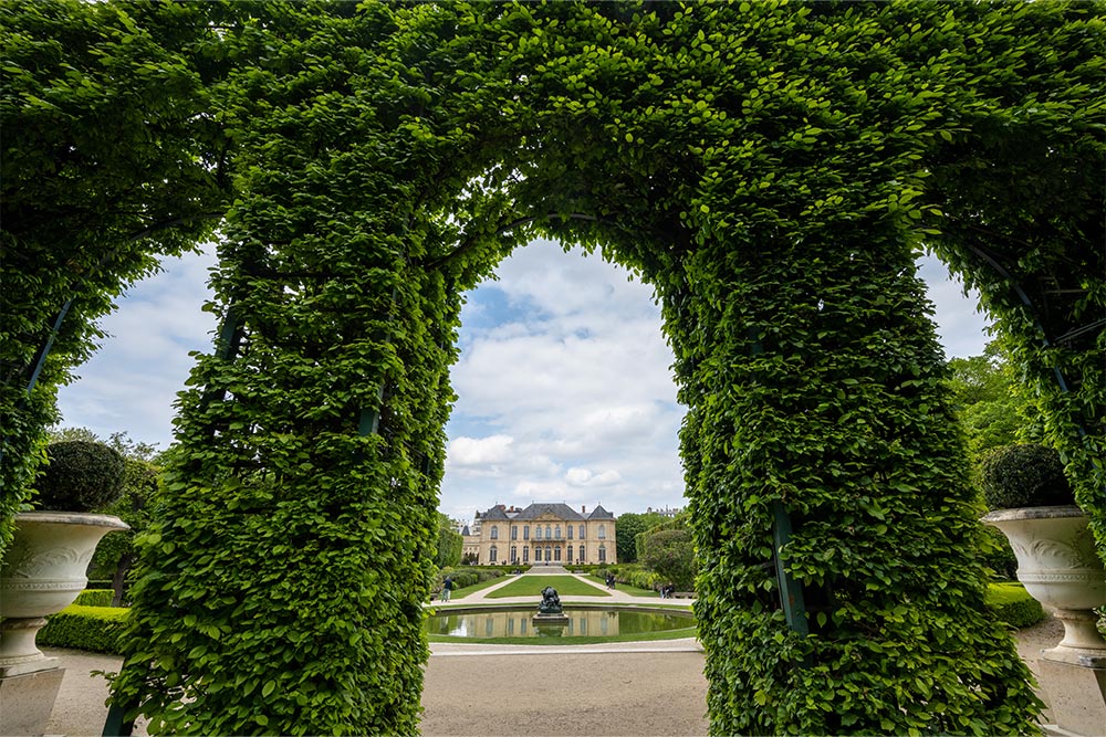 A photo of the Rodin Museum with the Sculpture Garden in Paris.