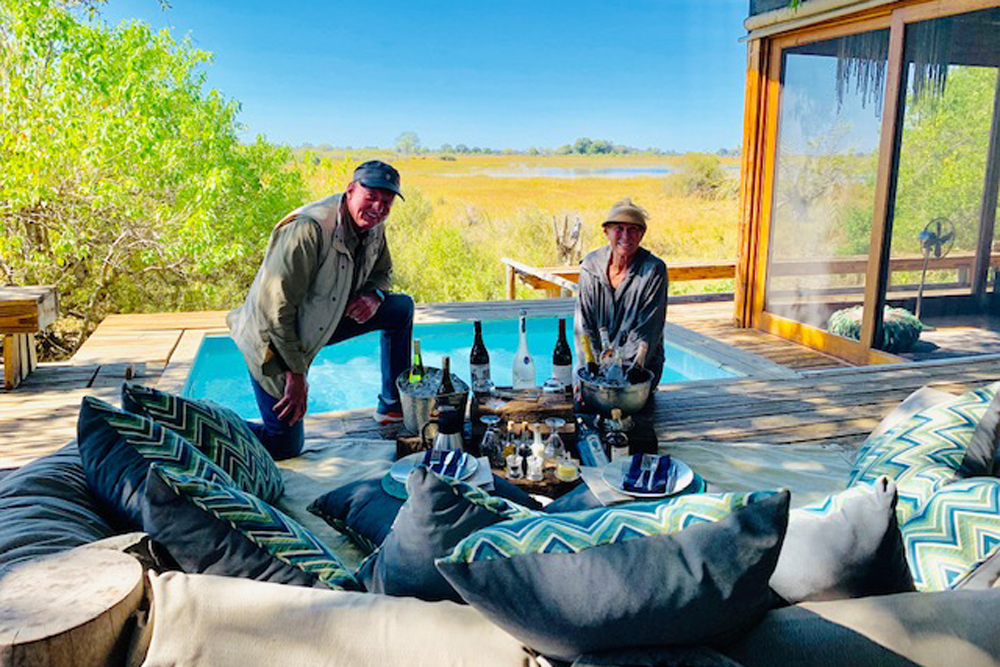 Among the highlights of our trip were room upgrades that were fabulous, wine waiting in our room as a gift from Katie, excellent cultural and nature guides, and surprise in-room lunches. One time, after a morning drive with lions, elephants, zebras, impalas, and giraffes, we returned to our incredible suite and found a surprise WOW brunch complete with a bottle of Franschhoek Rosé. We also loved the hippos serenading us outside our glam tent! And we can’t leave out the “WOW Moment” helicopter trip with private island landing in the delta of Okavango to toast a glass of champagne to our journey of a lifetime. We were over-the-top thrilled with our 21 days of travels. These life-changing experiences of Africa cannot be replicated without expert guidance and incredible support.
