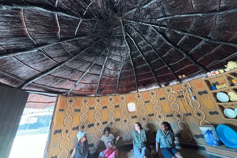 We were whisked off to the airport to head to Mana Pools to start safari. Amazing! It’s true; big game does come right up to the deck. We went to sleep to hippos singing and lions in the distance. From Mana Pools, we flew to Bulawayo and the Matapo region. Our private guide, Paul, was a brilliant and kind man. We saw the rhinos on our first evening in the park. We stayed with them, watching and moving with them as they traveled to their watering spot, all while the sun was setting. Paul was an expert on this region of Zimbabwe and the rock paintings scattered through the hills. We visited three different sites, all of which were amazing. Paul was kind in helping me navigate trails and rock steps up to the caves. I am not very fit, and it was hot, but it was so worth it! A highlight was a visit to a village and talking to an older woman and her adult granddaughter in their hut. We had an interpreter to make communication easier. This time was a memorable and profound experience for me. I didn’t want to leave.
