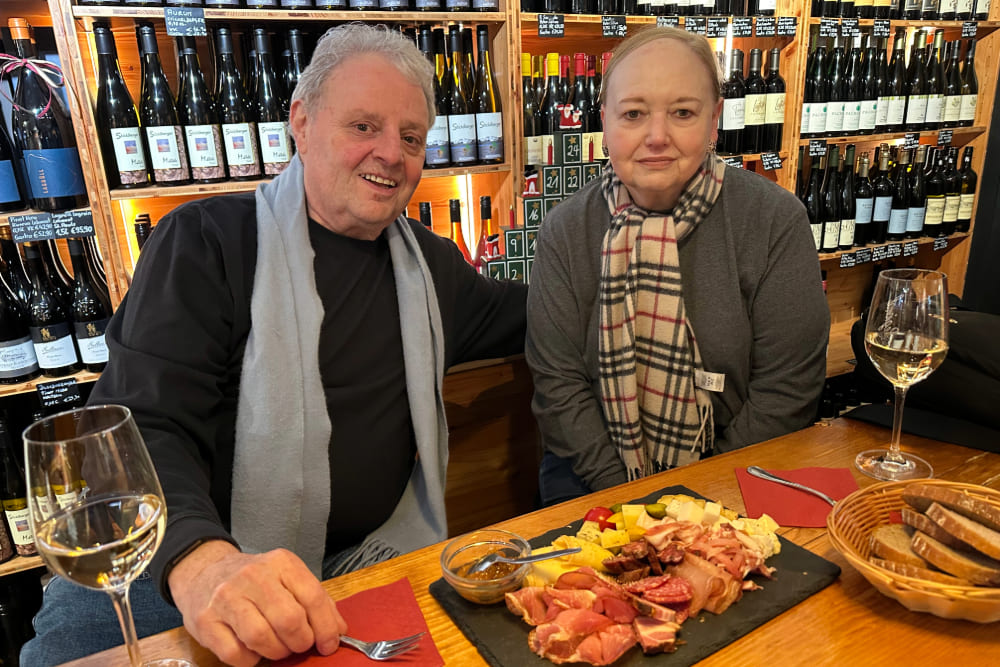 Travelers David and Lyn Heard, cozy during a food and drinks tour in Innsbruck.