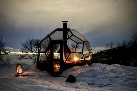 Kathye and her husband watched for the northern lights from inside this glass igloo.