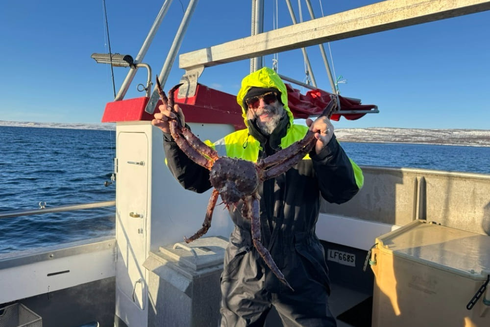 Traveler Patrick Woerner catching crabs in the Varanger Fjord.