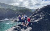 Susan Crandell and her family on the coast of São Jorge Island in the Azores, Portugal.