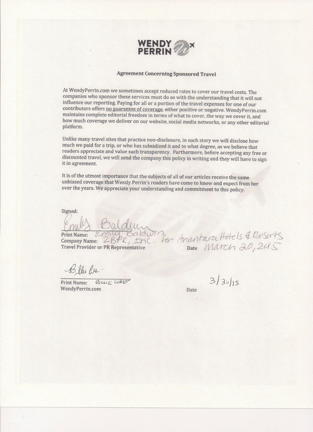 In keeping with WendyPerrin.com standard practice, there was no expectation of coverage on our hosts’ part, nor was anything promised on ours. You can read our signed agreements with Qatar Airways here and with Anantara Hotels & Resorts here