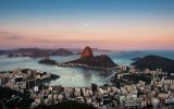 Sugarloaf Mountain and Botafogo Neighborhood in Rio de Janeiro by Sunset with Full Moon in the Sky