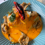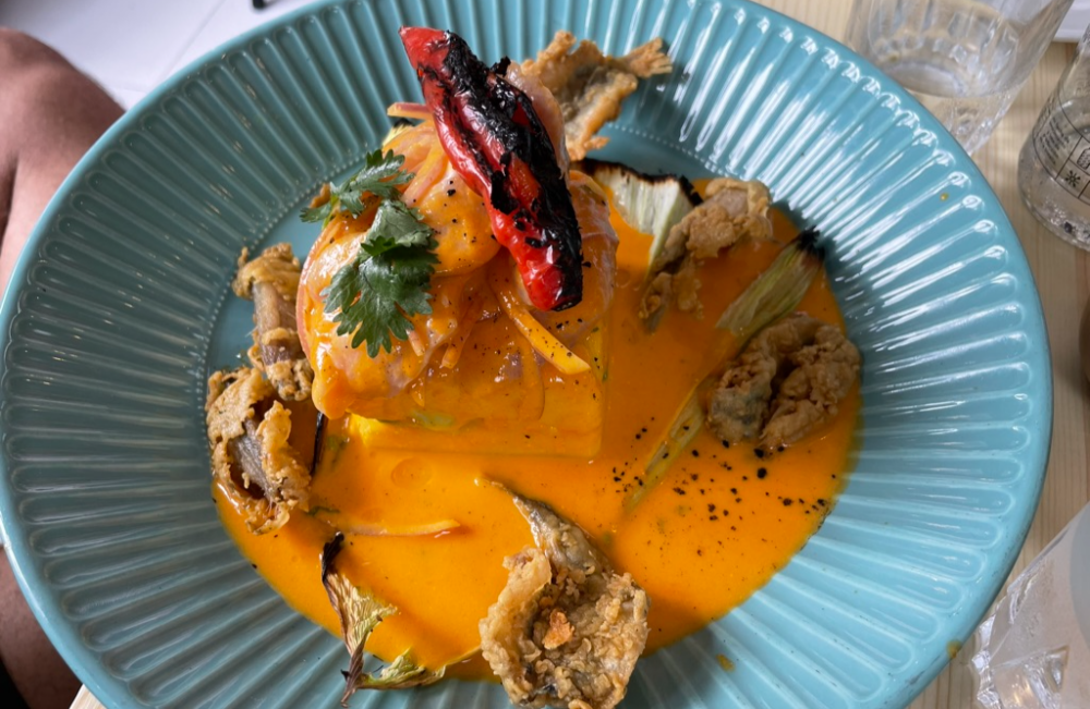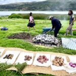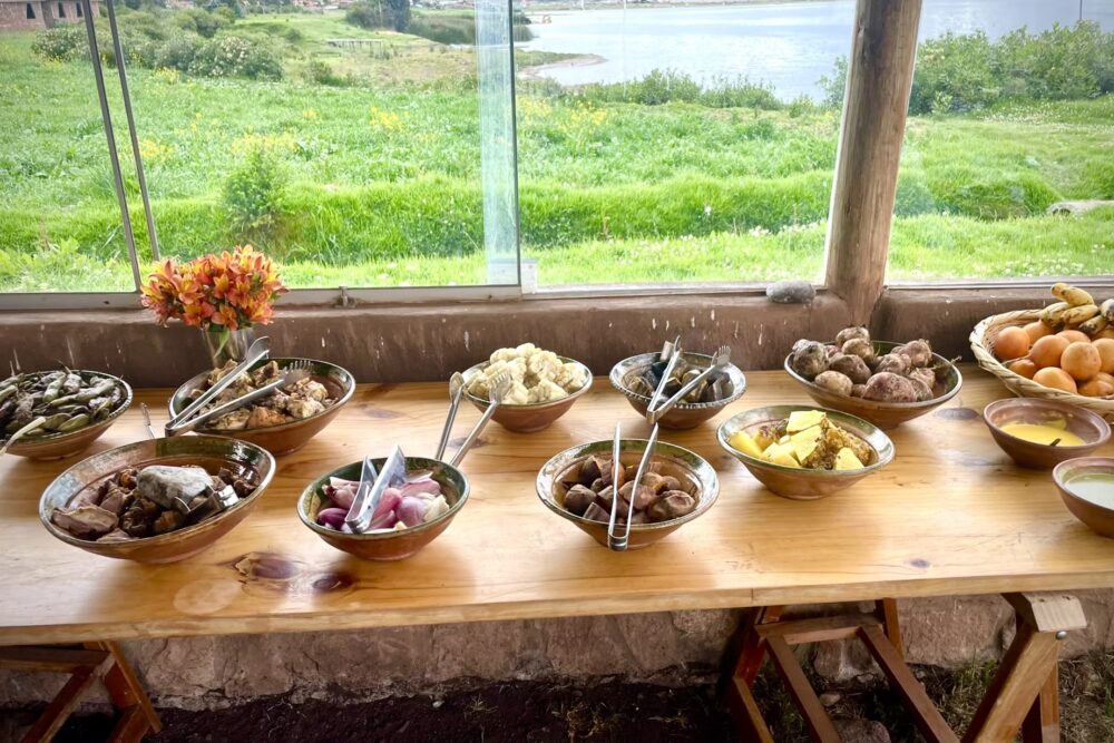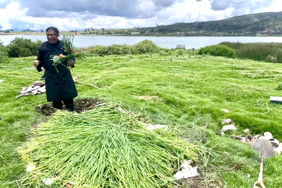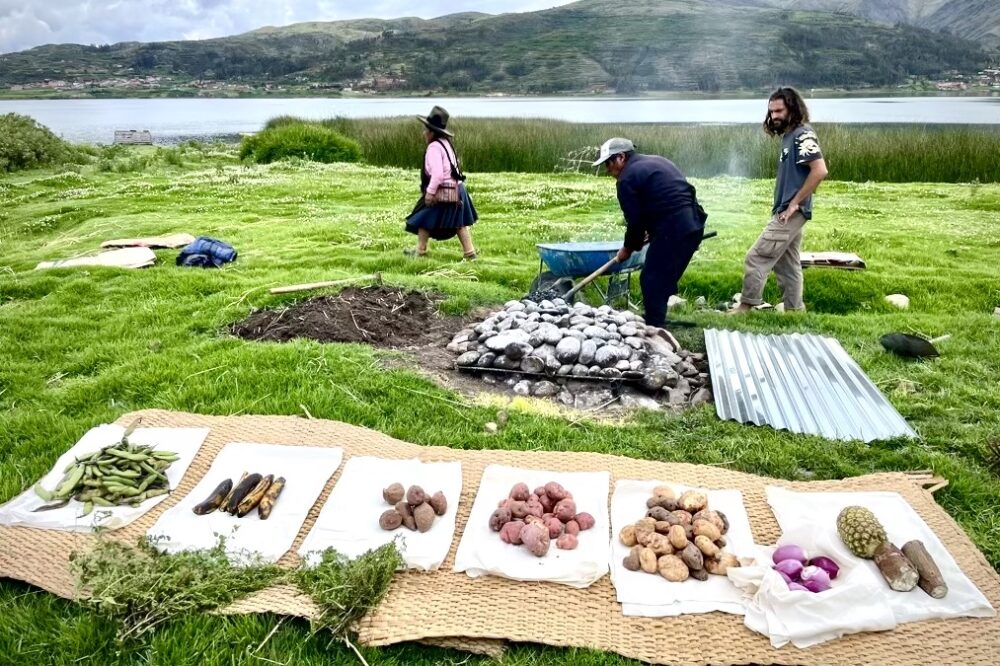 Brook’s lunch in Peru with a buffet full of dishes cooked underground.