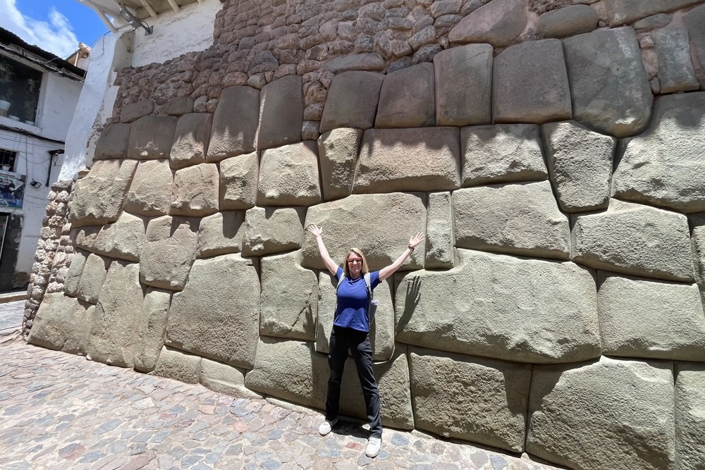 Brook offers a bit of scale beside the enormous stones in an Inca wall in Cusco.