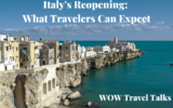 coastal town Vieste Italy with text that says Italy's reopening what travelers can expect