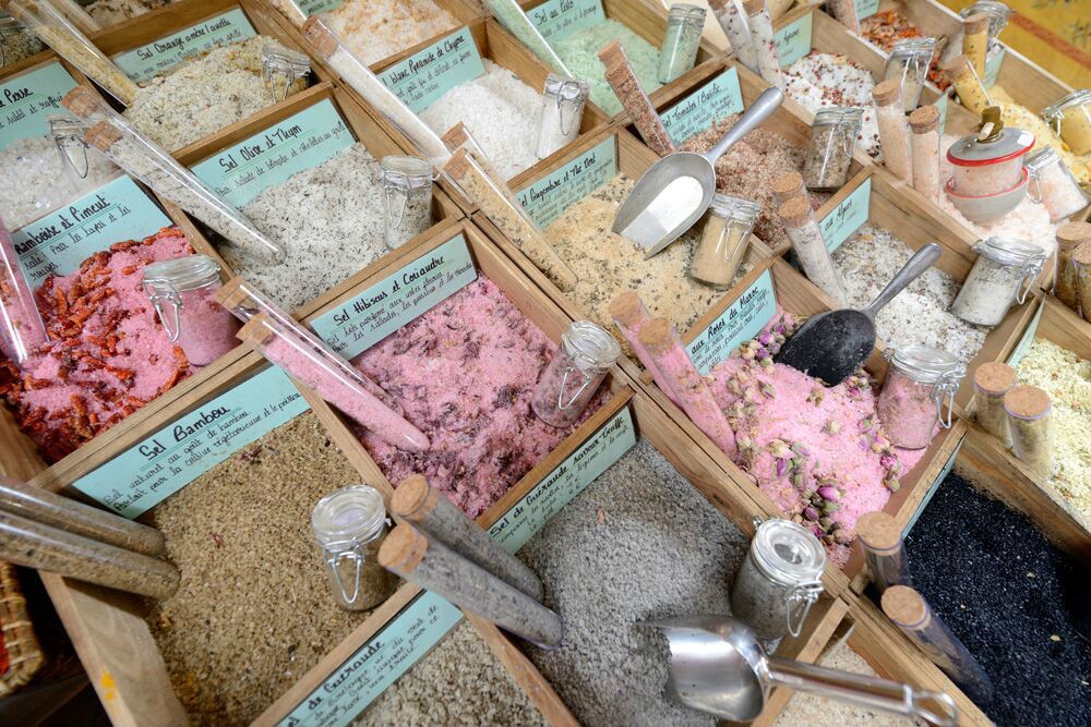 We found a rainbow of salts from around the world (including the Himalayas, Morocco, and Hawaii) in a shop called Lou Pantai in Nice, France.