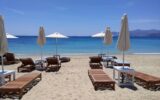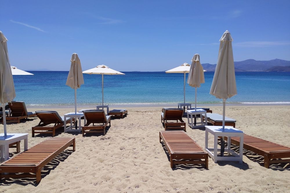 As for the beaches, they were peaceful, picturesque, and not too crowded at this point of the season (and only a few weeks after the country reopened to travelers). The sandy stretches here are longer than on the other popular islands so there’s more space to spread out and walk. There are several beach areas around the island, so you can hop around and find your favorite. I was walked to the seaside village of Agios Prokopios from my hotel, where you can either rent one of the chaise lounges that various establishments have lined up on the sand (some farther apart than others) or bring your own blanket. And food can be ordered from shoreline restaurants and eaten al fresco.