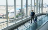 Wendy Perrin rolling carry-on luggage at JFK to Uzbekistan