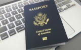a U.S. passport sitting on a laptop keyboard