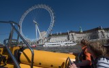 A rib ride on the Thames River is a fun way to see waterfront sights such as the London Eye.