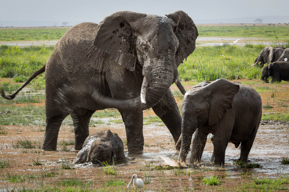 Like dusting, mud baths also protect elephants from the sun and insects. Catch an elephant near some mud and prepare for spraying, wallowing, and some great mud-caked faces.