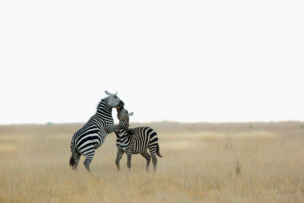 Zebras fighting, whether in play or in shows of dominance, make wonderful photographs. Look for two zebras chasing each other, forcefully nudging one another in the shoulder, or nipping each other on the muzzle for signs that one or both may rear up.