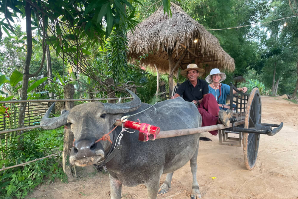 We spent a few days in Bangkok, where I was able to meet up with a friend I haven’t seen in 22 years. That was such a treat. We then went on to Luang Prabang. We did have some rain here but our guide did his best to adjust as much as possible. Given that, I loved our time here. The Baci ceremony was really special. The hike we did with the school visit and entering the water falls from the top was perfect. The alms giving (even in the rain) was fascinating, and the food was wonderful.