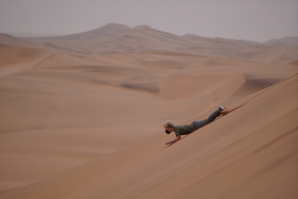 It was my fifth African safari, but it was unlike any Africa trip I’d taken before. I found myself hiking along the sinuous knife’s edge of an enormous, copper-toned sand dune. Negotiating a quad bike up to a rocky bluff for a view over an enormous valley, tinged a vivid green after recent rains. Sliding down a perilous slope on a wooden board, undulating ridges of sand the only thing visible in every direction. Exploring a rusted shipwreck, its pieces scattered along what’s come to be known as the Skeleton Coast.