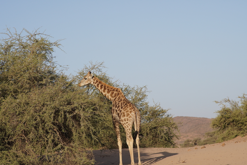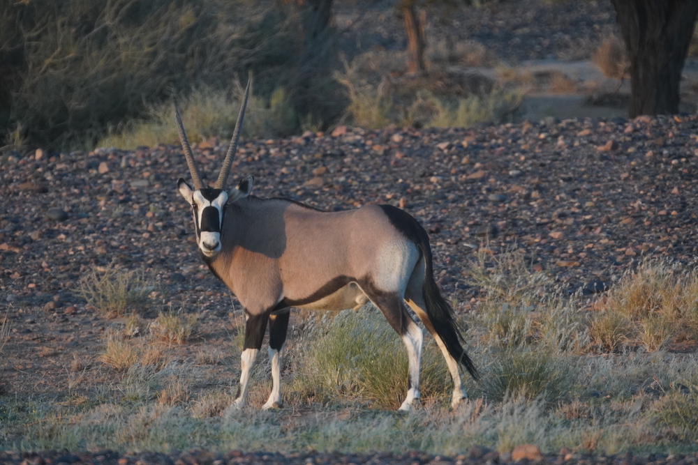 While in Namibia, we stayed at two of Wilderness Safaris’ camps, Little Kulala and Hoanib Skeleton Coast Camp. Since there’s no malaria and no light pollution in the desert around Kulala (indeed, in Namibia it’s common to fly for an hour or more and see not a single sign of humanity’s presence on earth), we took advantage of the king-sized bed and fluffy duvet on our private desk and slept outside. Thanks to Cherri’s careful planning, we were visiting during the new moon, and the sky glowed with innumerable pinpricks of light accented by the frequent pulse of a meteoroid streaking across the sky; a softer diagonal band directed my eyes to the edge of the Milky Way. I’ve never been so grateful to be jet-lagged and awake at 3:00 a.m. (If you want to see the inside of my room at Little Kulala, see my Instagram video below.)