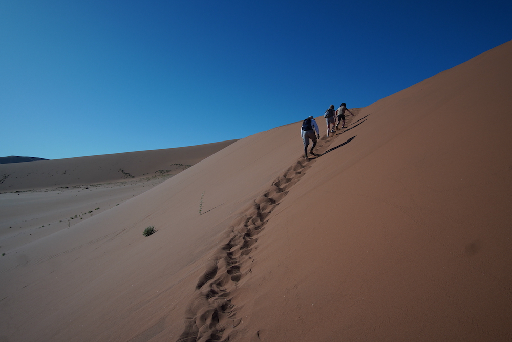 The beginning of the climb up Big Daddy, an enormous sand dune in the Namib-Naukluft National Park.