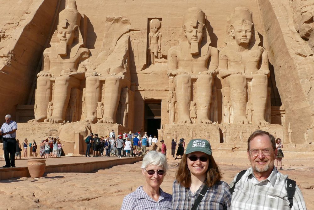 Mary, Julia and Steve in front of the 108-foot-high facade of Abu Simbel