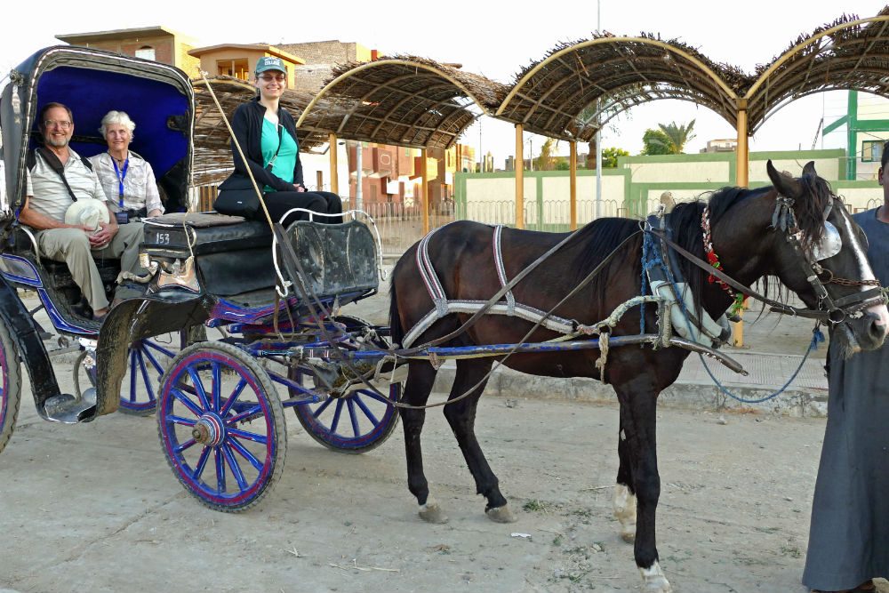 Steve, Mary and Julia taking a carriage to the Temple of Horus at Edfu