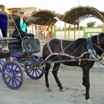 tourists taking a carriage to the Temple of Horus at Edfu Egypt