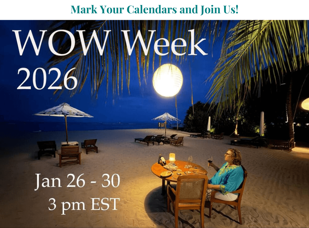 Find out during WOW Week, January 26 – 30, when we’ll be holding Travel Talks on Zoom at 3 pm EST daily.